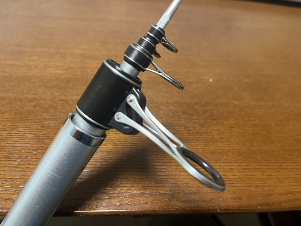 2液をまぜてロッドに塗った後、トップガイドを取り付け、樹脂の硬化を待ちます。