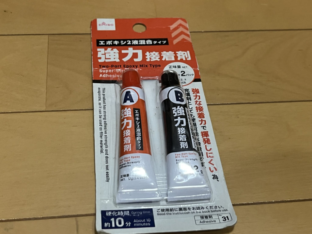 家にあった、ダイソーのエポキシ2液混合タイプ強力施着剤をつかってみました。
