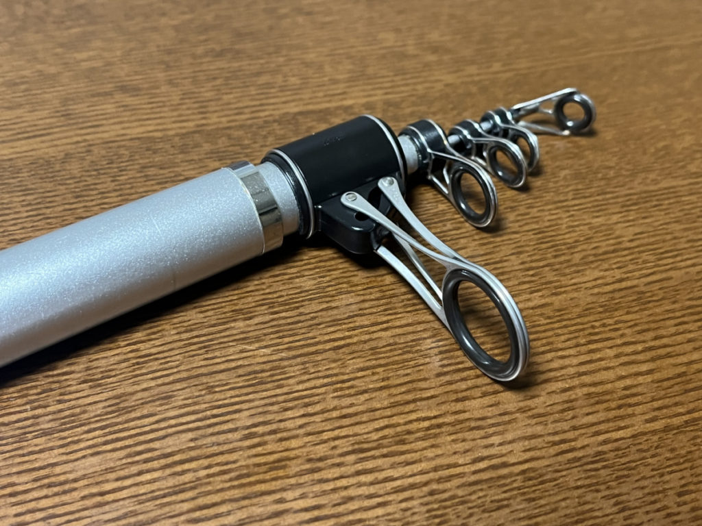 二番目ガイドからは、ロッドエンドのキャップを外し、上からカツカツ当てていくと、ガイドが外れていきます。