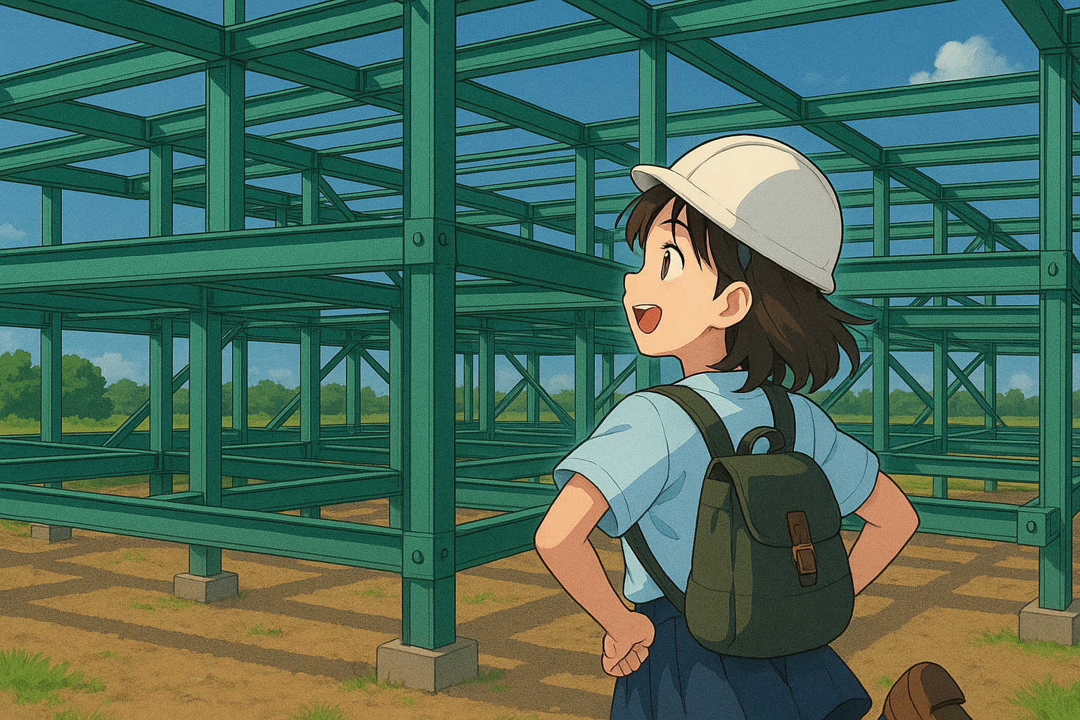 真新しく緑色に塗られたばかりのような鉄骨が組み上げられている。