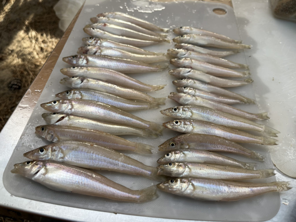 キャンプ場近くでは、もっとたくさん釣りましたが、ちいさかったのでリリースしたりしました。