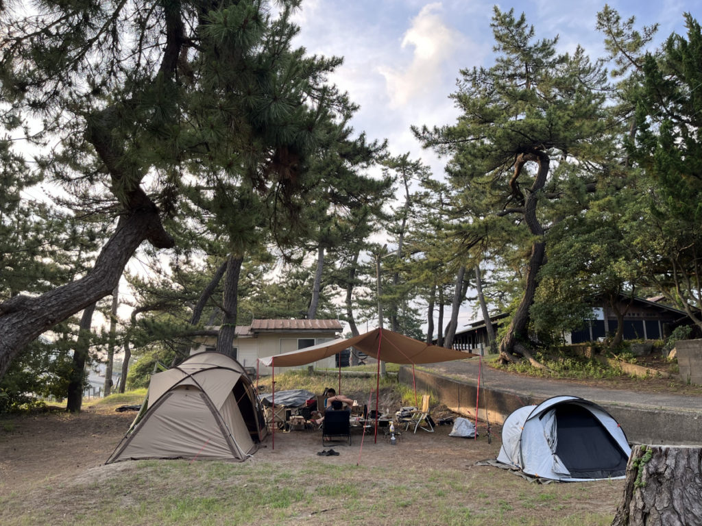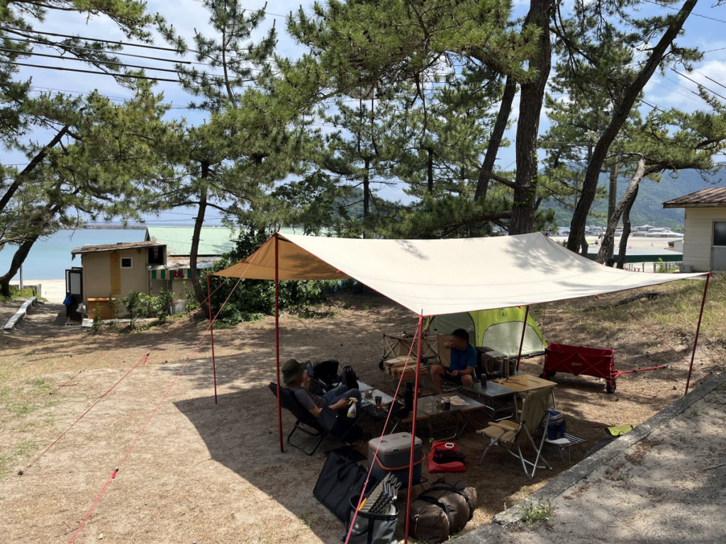 前回、キス釣りを終えて、若狭和田キャンプ場に到着したところでした。