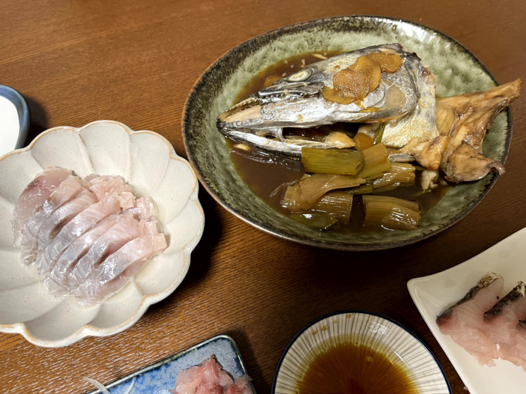 翌日には頭を煮てもらい、左はサゴシのきずし(しめさばと同じもの)です。