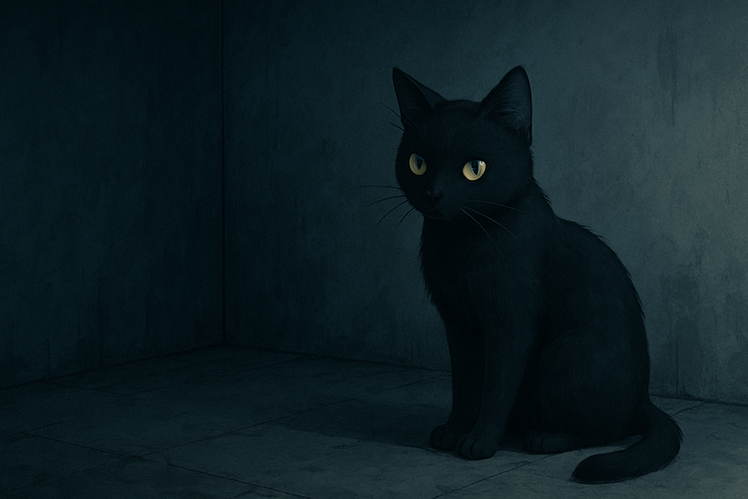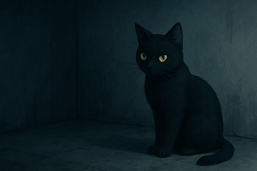 ふと背中に気配を感じて振り返ると、部屋の隅に黒猫がいるのが見えた。
