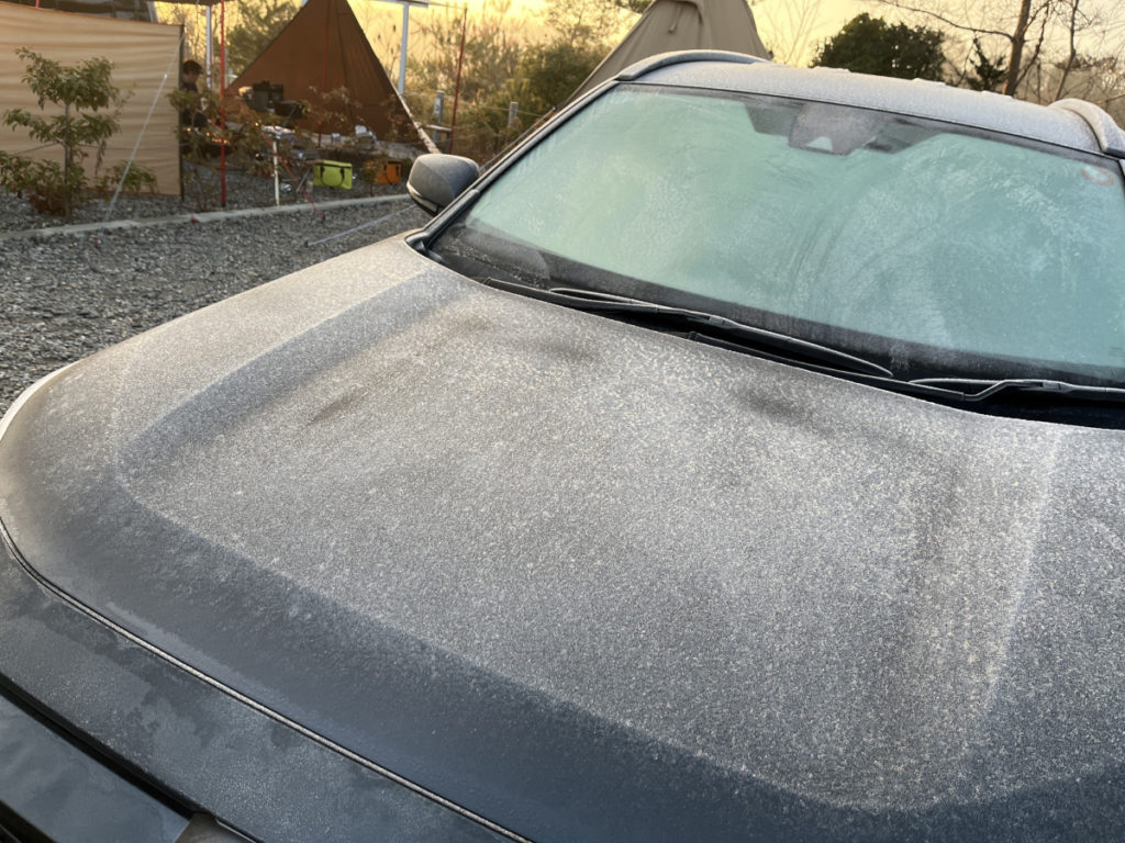 車の表面がシャリっと凍ってます。