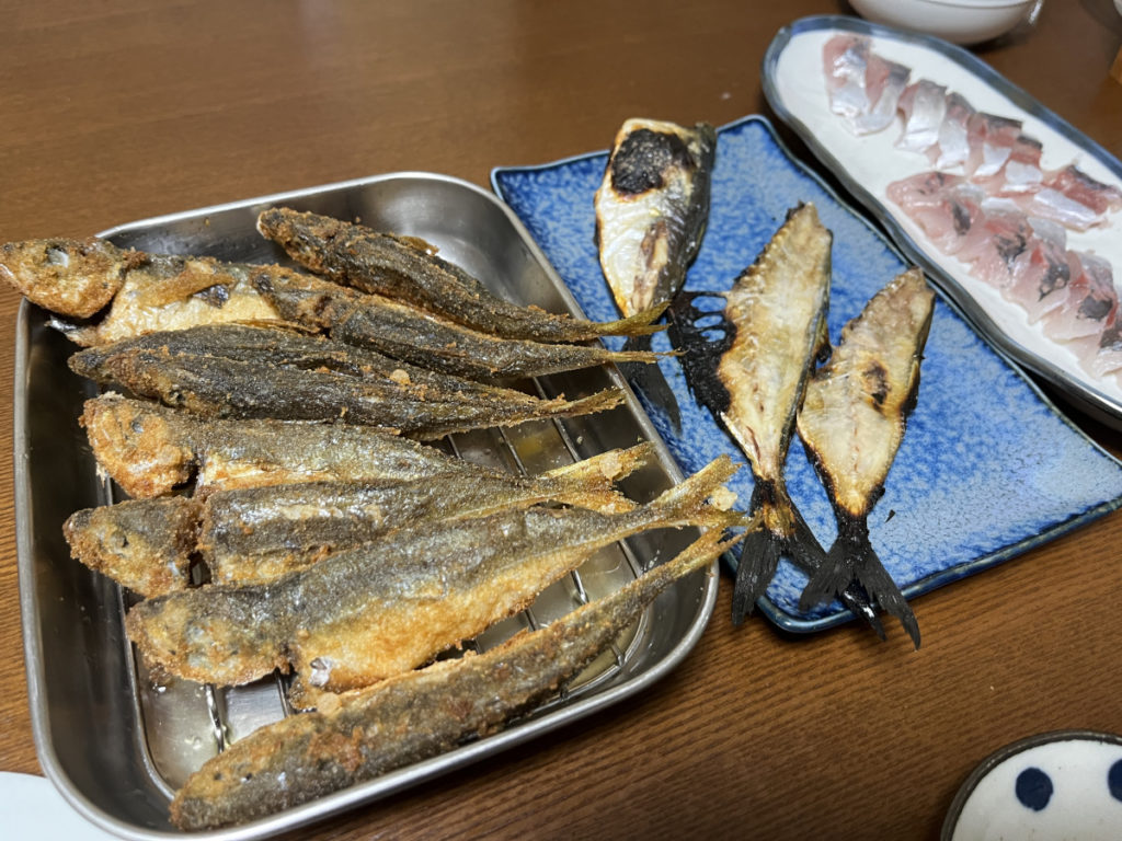 アジ素揚げや塩焼きでもいただきました。うまし!