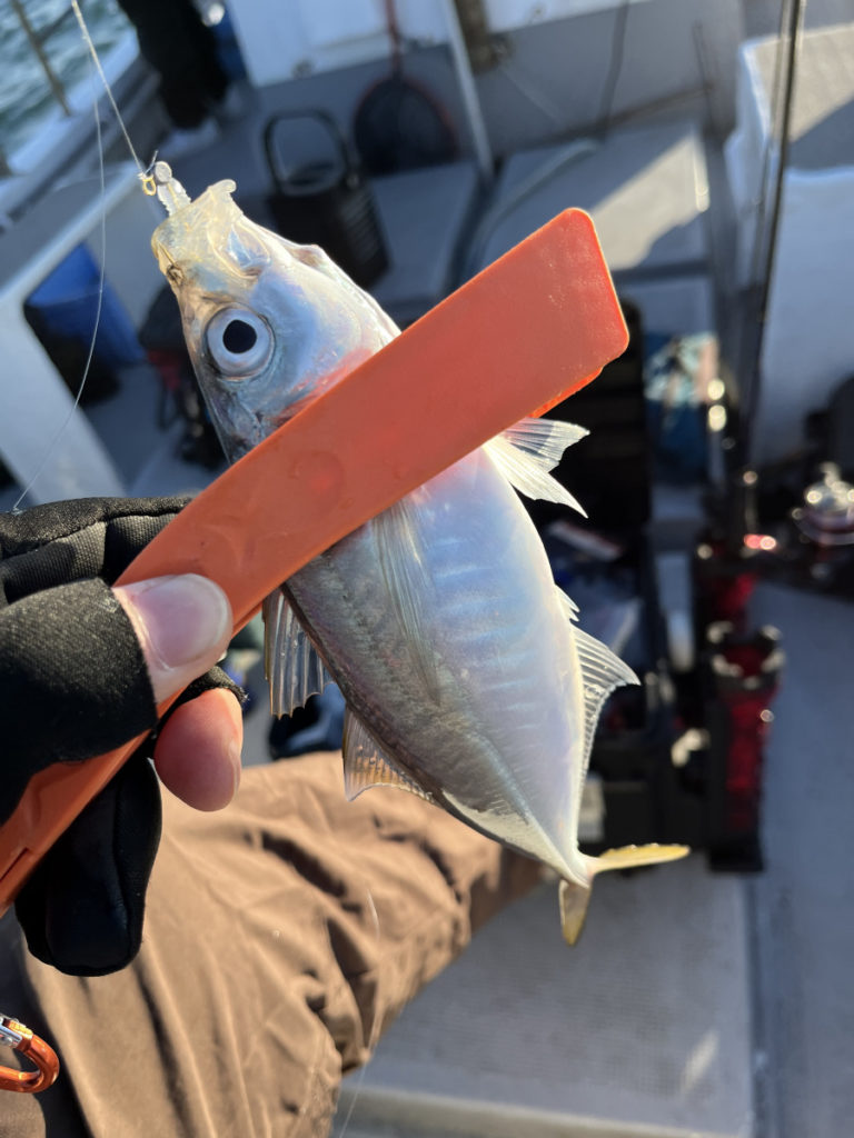 釣り船の釣果としては、バチコンで中アジ最大16匹とあり、なかなか大きく遠かったです。