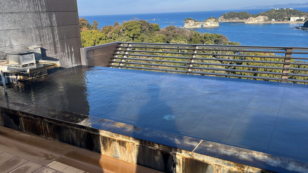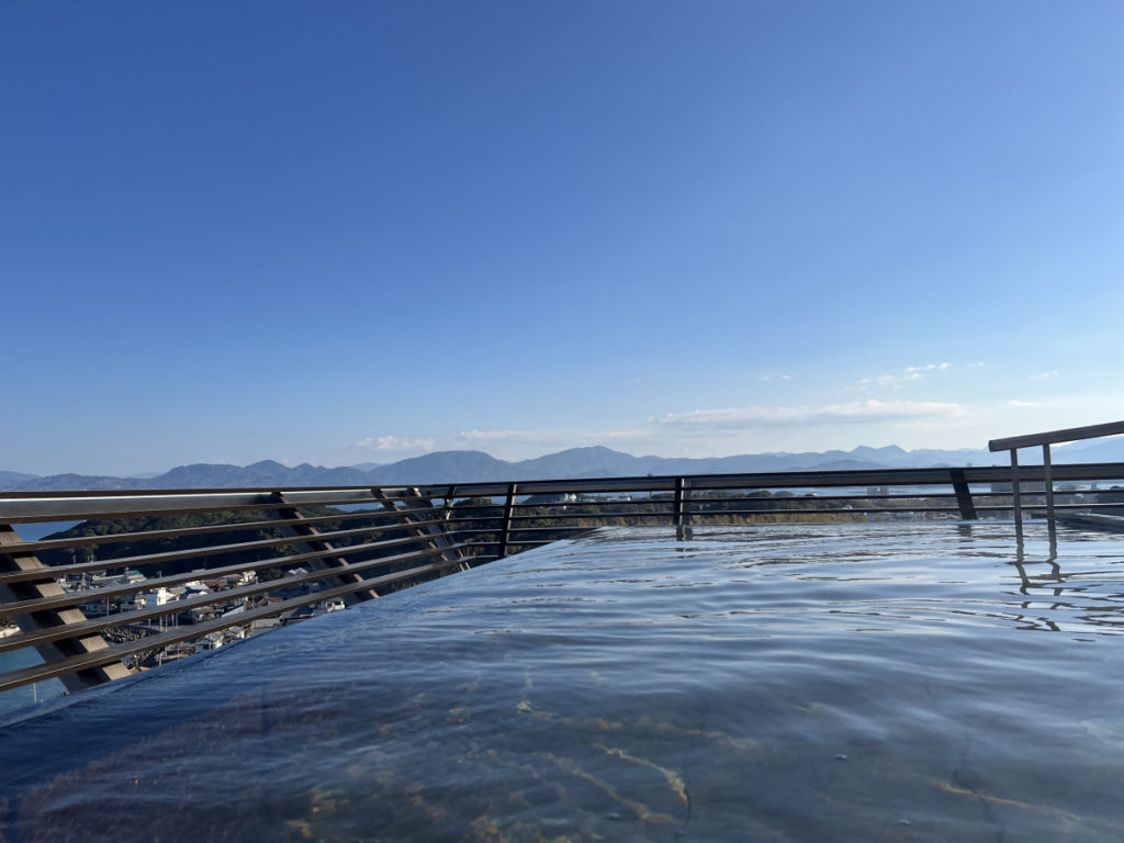 空の青さと合体して、インフィニティ温泉的な感じです。