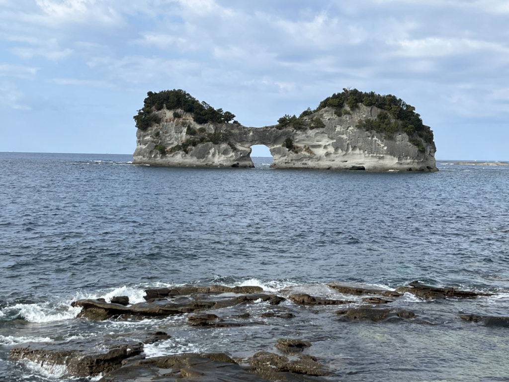 円月島は下写真のように、真ん中に穴の開いた2連の島です。