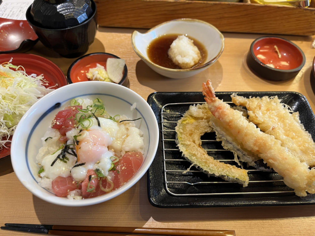 「揚げたて天ぷらと勝浦生まぐろ漁師めし膳」をいただき!